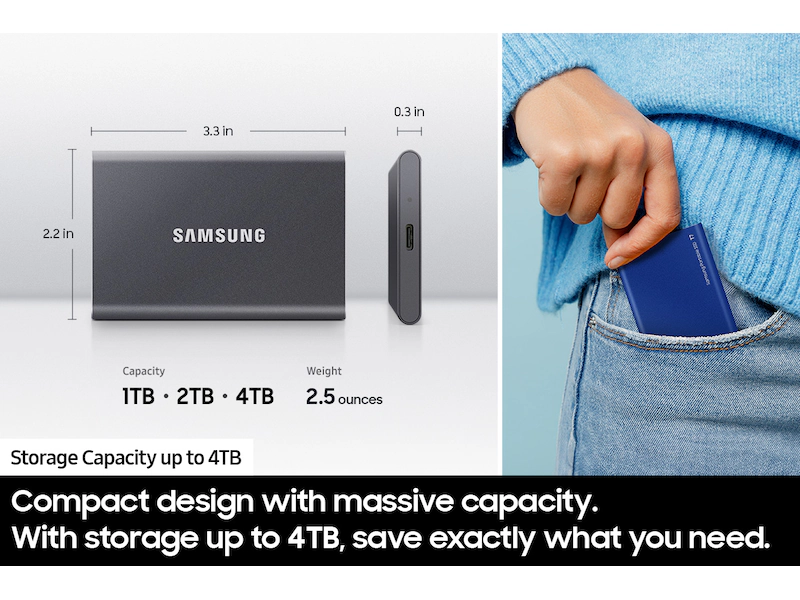 El Samsung Portable SSD T7 1TB reúne velocidad, portabilidad y confiabilidad en un formato elegante y compacto — ideal para usuarios exigentes que necesitan almacenamiento rápido y seguro tanto en casa, en la oficina o en movimiento.